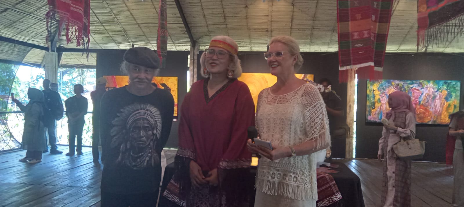 Rotua Magda Pardede (tengah) bersama Iskandar Surya Saputra, Pemilik Saung Grajen dan Elizabeth M Taylor Seniman New Zealand & Konsultan Artistik