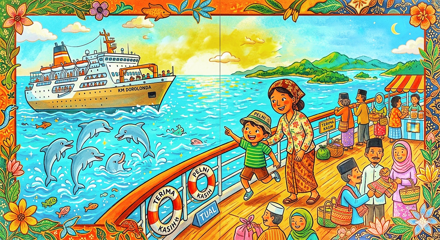 Di dermaga besar Tanjung Priok, ada sebuah kapal putih yang gagah bernama Kapal Pelni. Seorang anak laki-laki bernama Wai duduk di dekat jendela bersama Ina, ibunya. Mereka akan memulai perjalanan lima hari menuju Kepulauan Kei di Tual.